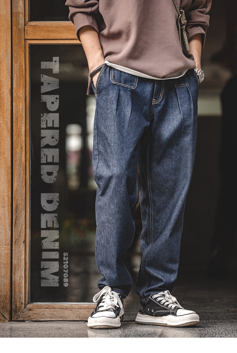 Maden Retro Denim Wash Baggy Men's Jeans Wide Leg Tapered Pants Fashion Casual Streetwear Jean Straight Elastic Men Trousers