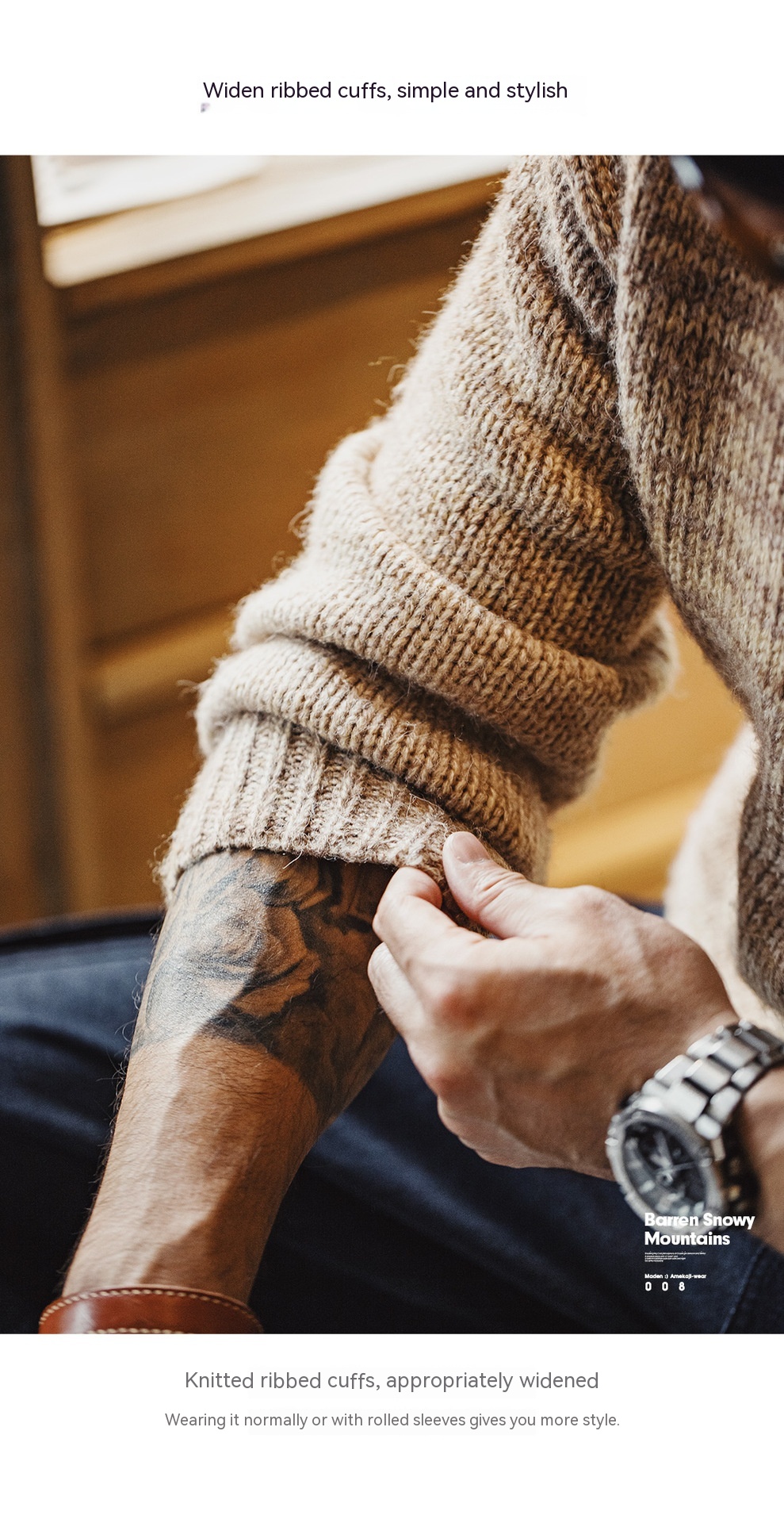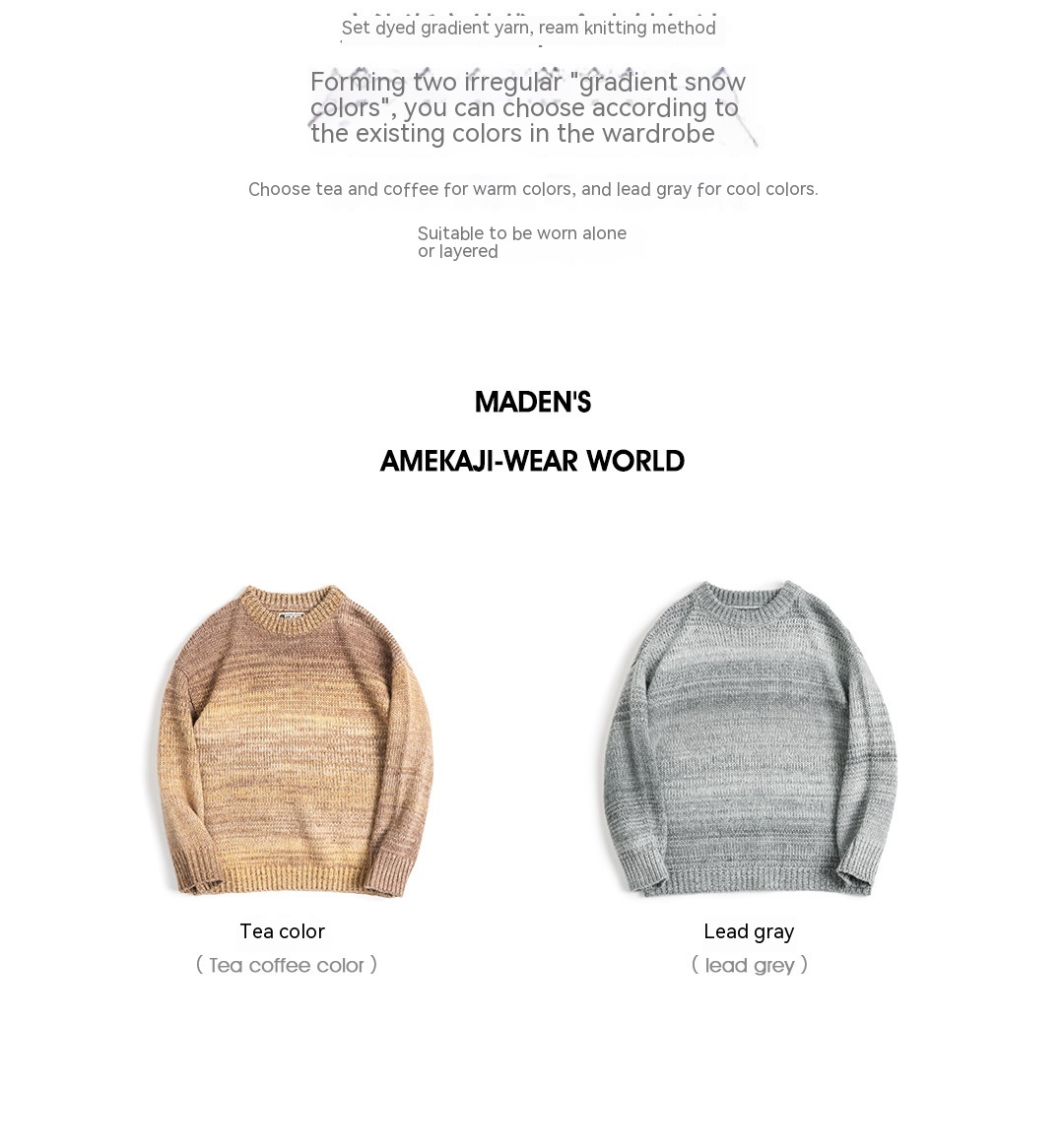 MADEN Retro Gradient Striped Sweater Round Neck Blended Sweater