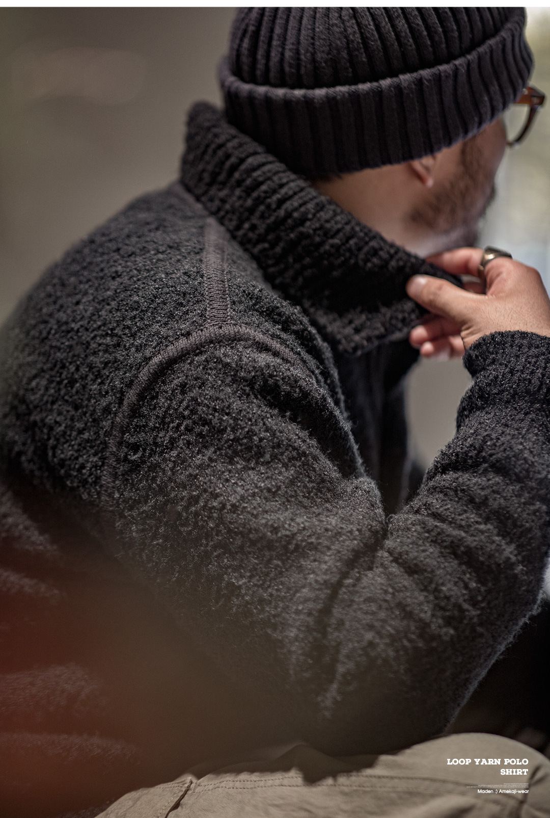 MADEN Retro Heavy Knitwear Polo Lapel Thermal Head Cover Thick Sweater