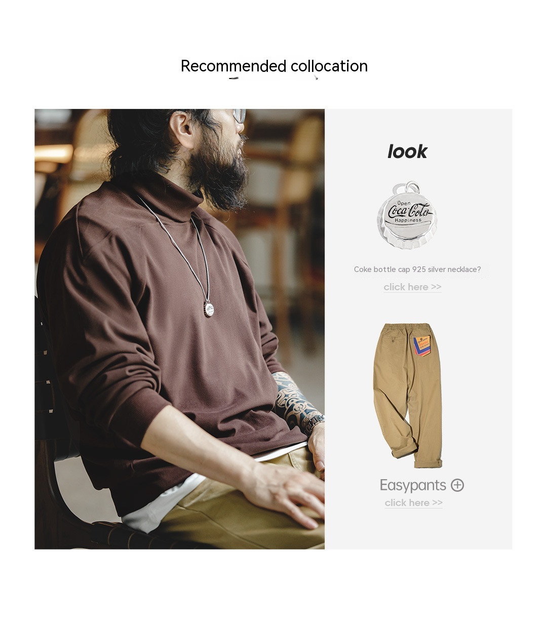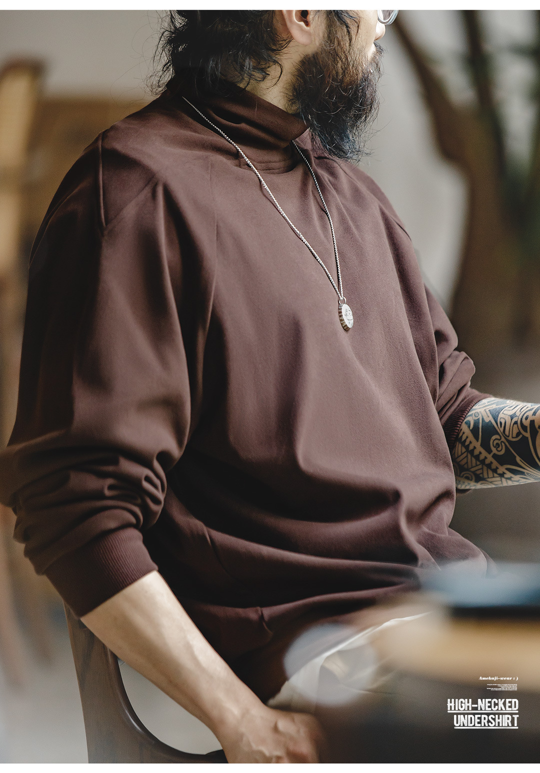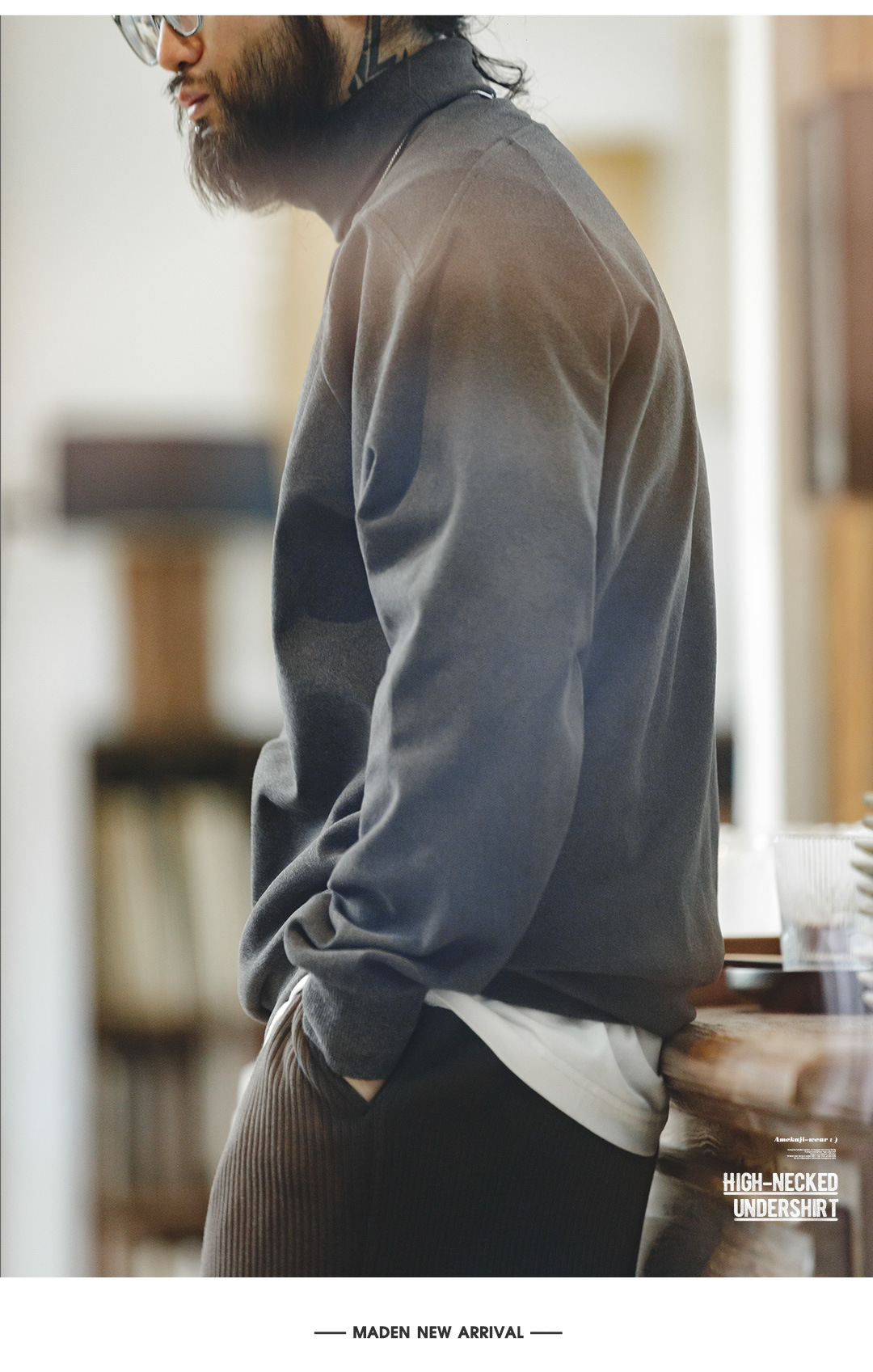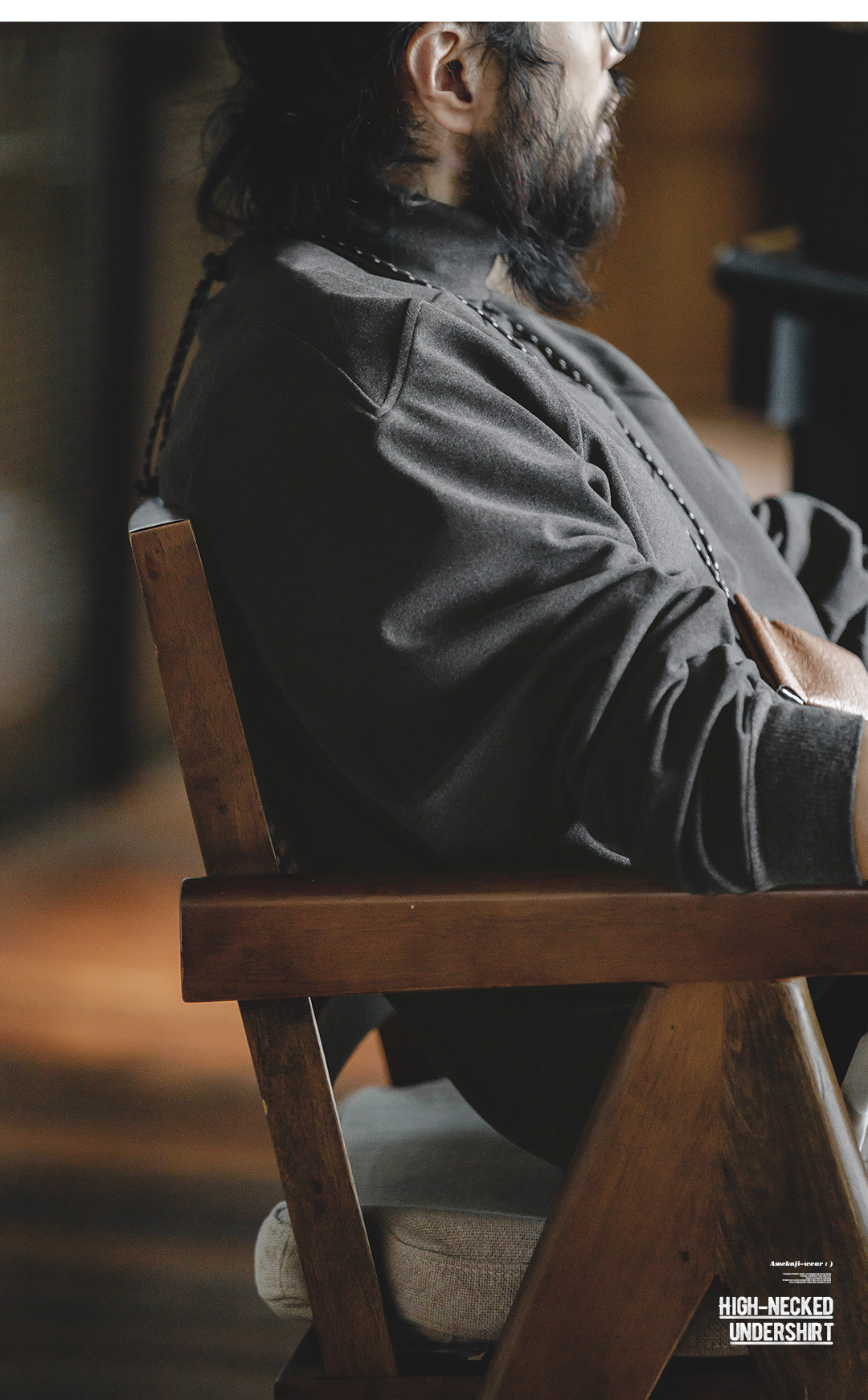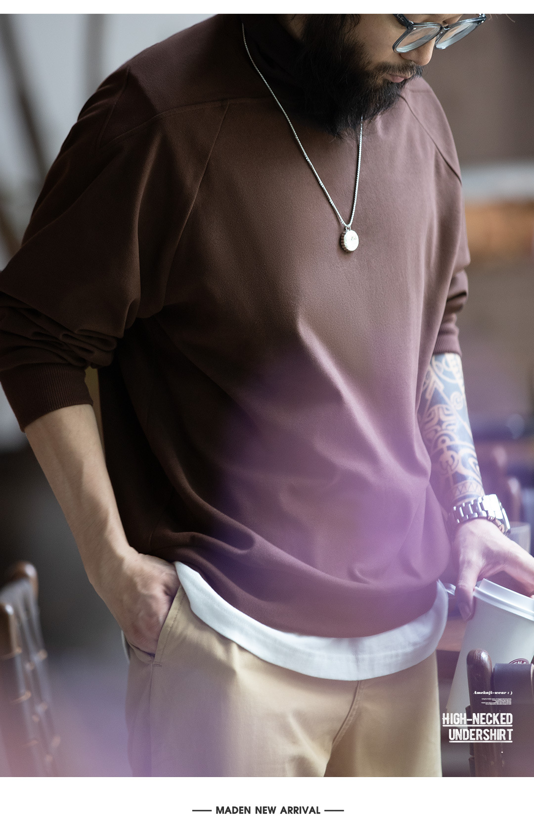 MADEN Retro Imitation Dralon High Collar Warm Raglan Sleeve Bottoming Shirt