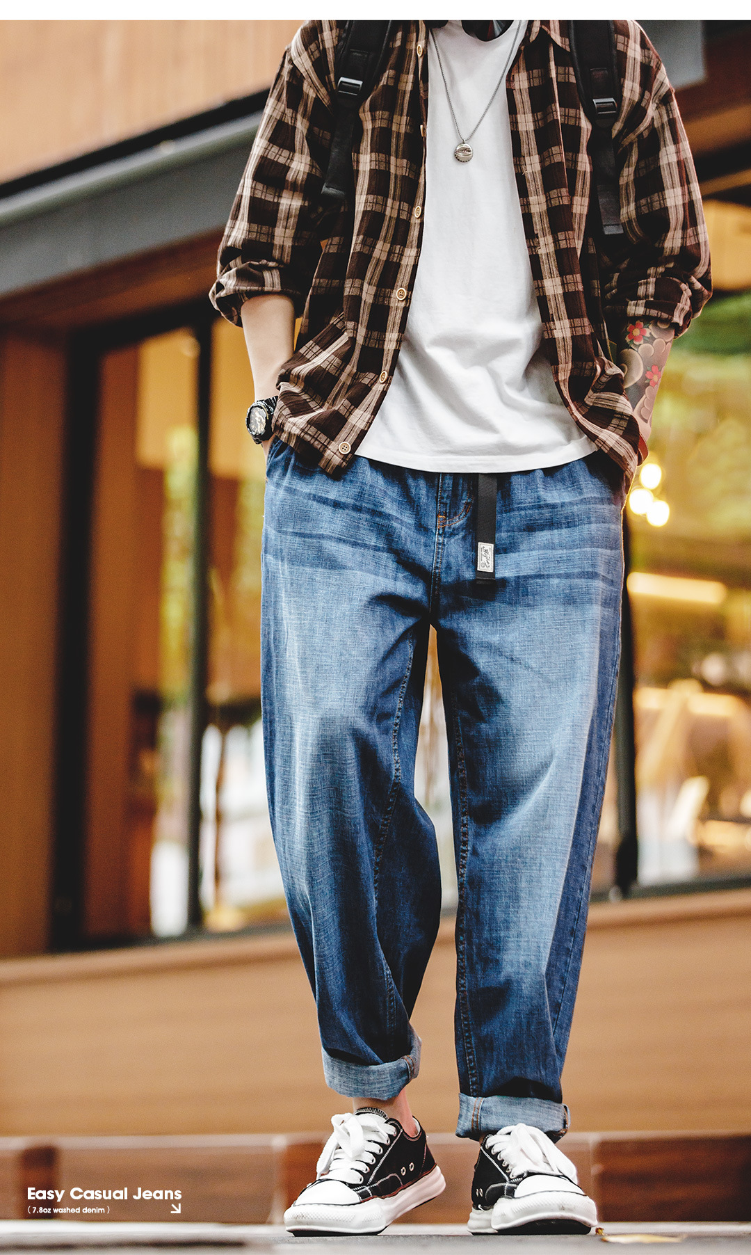Maden Denim Wash Cat Beard Loose Straight Leg Jeans
