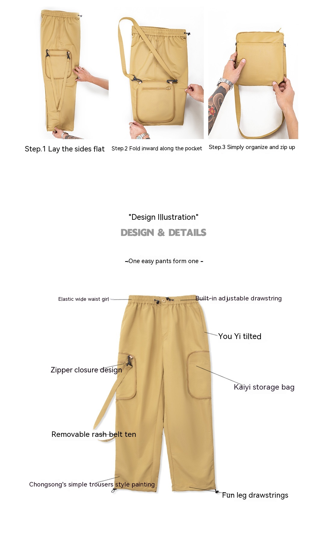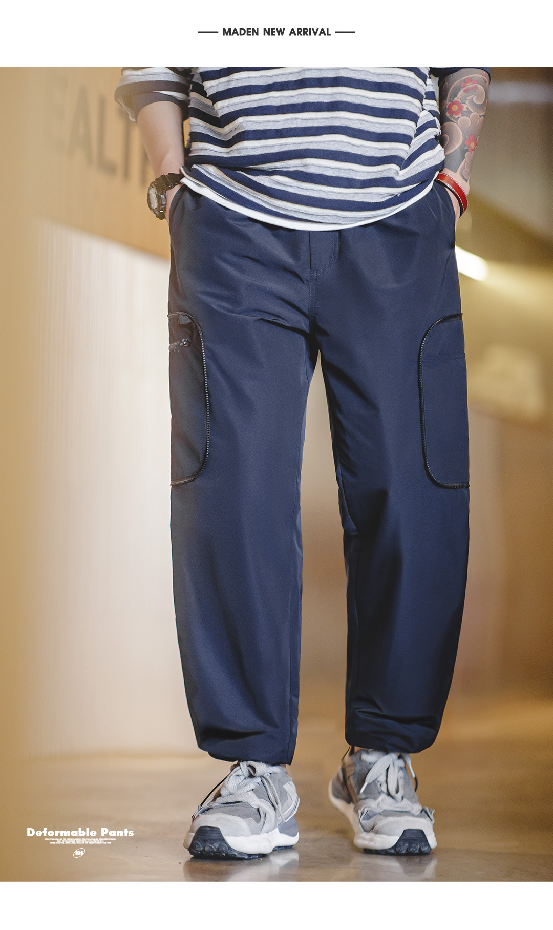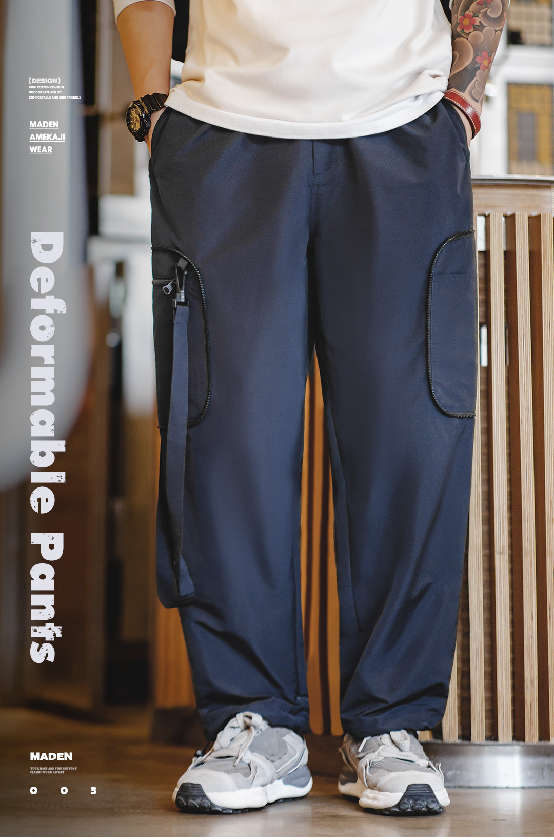 Maden Maggoed Pocket Loose Drawstring Leggings Multi Functional Straight Leg Casual Pants